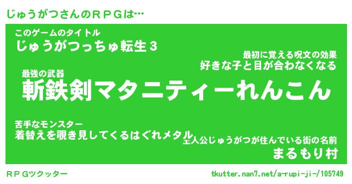 | 胡散臭い通販商品みたいなあだ名 | 『必ず成功する霊験あらたかなお札…その名も「じゅうがつ」』 |