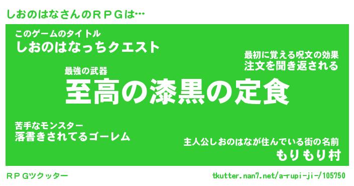 | 男性向けラノベタイトル風あだ名 | 『シオノハナアートオンライン』 |