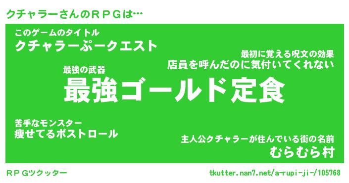 ヒーロー風カッコイイあだ名 | 『スーパークチャラー』『幻影騎士クチ』 |
