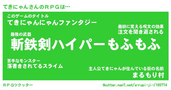| 男性向けラノベタイトル風あだ名 | 『てきにゃんの憂鬱』 |