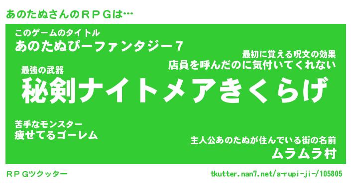 | ファンタジー風あだ名 | 『アノフェル』『エターナルアノタヌー』 |