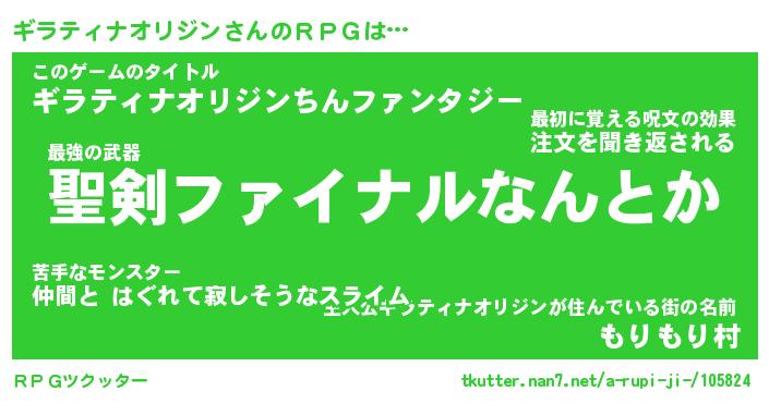 | 意味不明あだ名 | 『ペロリンギラティナオリジン』 |