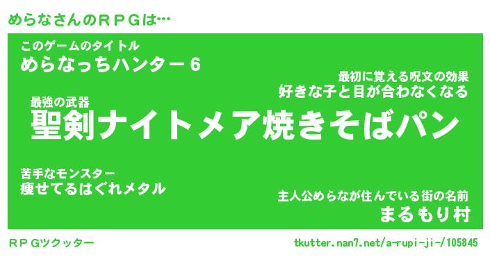 | 男性向けラノベタイトル風あだ名 | 『めらなの憂鬱』 |