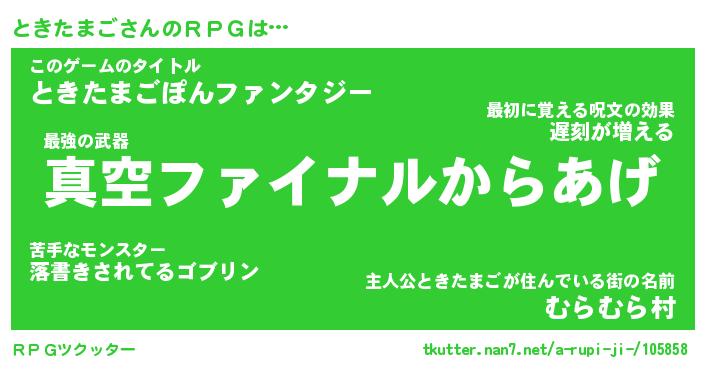 | ファンタジー風あだ名 | 『トキフェル』『エターナルトキタマゴー』 |