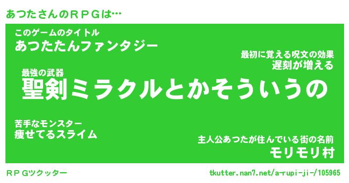 | 胡散臭い通販商品みたいなあだ名 | 『必ず成功するブレスレット…その名も「あつた」』 |