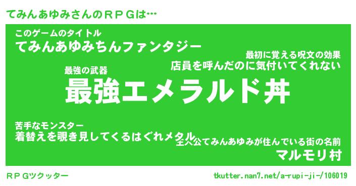 | 胡散臭い通販商品みたいなあだ名 | 『モテモテ間違いなし霊験あらたかなお札…その名も「てみんあゆみ」』 |