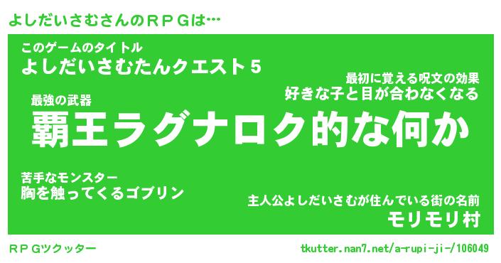 | 胡散臭い通販商品みたいなあだ名 | 『億万長者になれるブレスレット…その名も「よしだいさむ」』 |