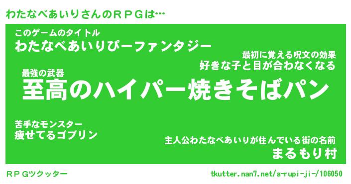 | 伝説のあだ名 | 『不死鳥の竜騎士わたなべあいり』 |
