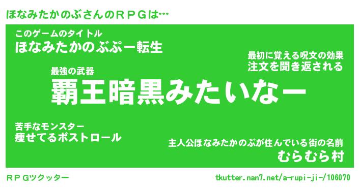 | 伝説のあだ名 | 『封印されし傭兵ほなみたかのぶ』 |