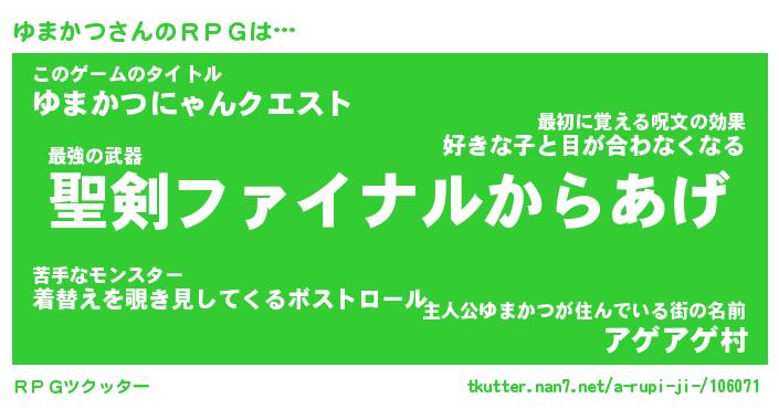 | ファンタジー風あだ名 | 『ユマフェル』『エターナルユマカツー』 |