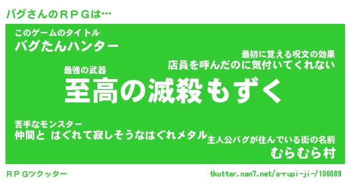 | 料理風あだ名 | 『節約★バグと油揚げの玉子丼』 |