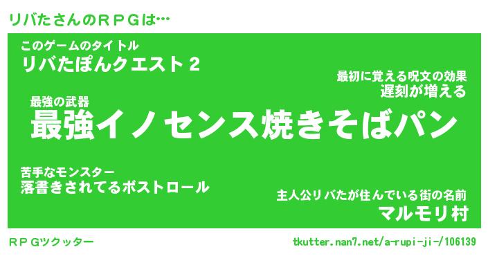 | 男性向けラノベタイトル風あだ名 | 『リバタアートオンライン』 |