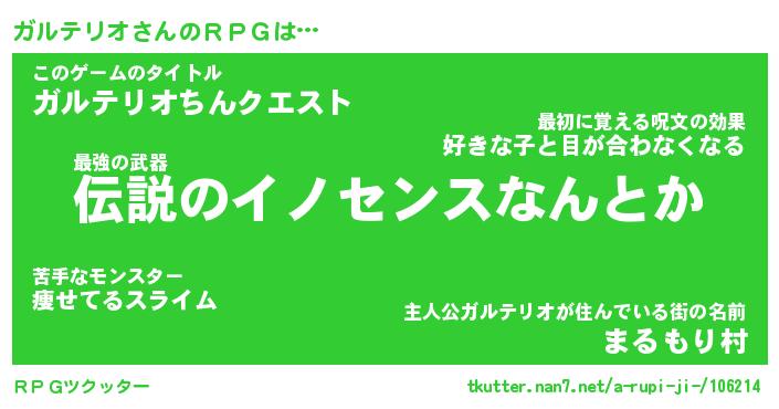 | 男性向けラノベタイトル風あだ名 | 『ガルテリオの憂鬱』 |