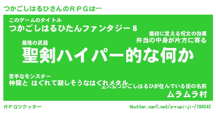 | 伝説のあだ名 | 『伝説の竜騎士つかごしはるひ』 |
