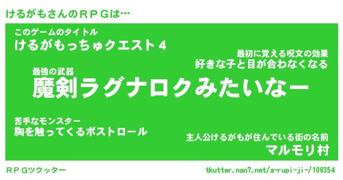 | 男性向けラノベタイトル風あだ名 | 『けるがもの憂鬱』 |