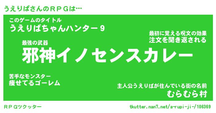 | 男性向けラノベタイトル風あだ名 | 『ウエリバアートオンライン』 |