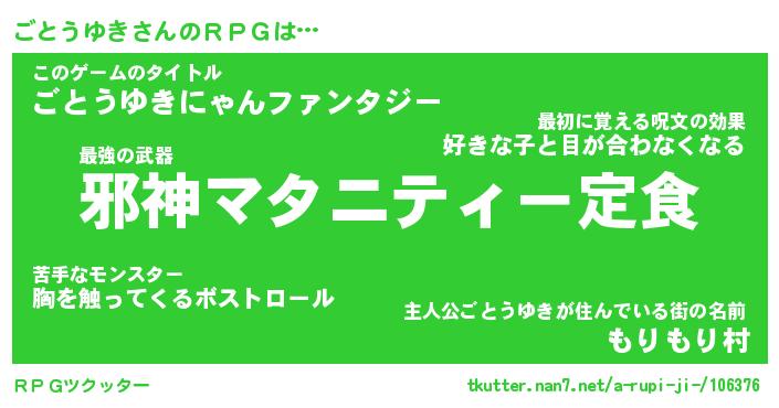 | ヒーロー風カッコイイあだ名 | 『スーパーゴトウユキ』『魔戒騎士ゴト』 |