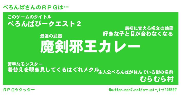 | 男性向けラノベタイトル風あだ名 | 『べろんぱの憂鬱』 |
