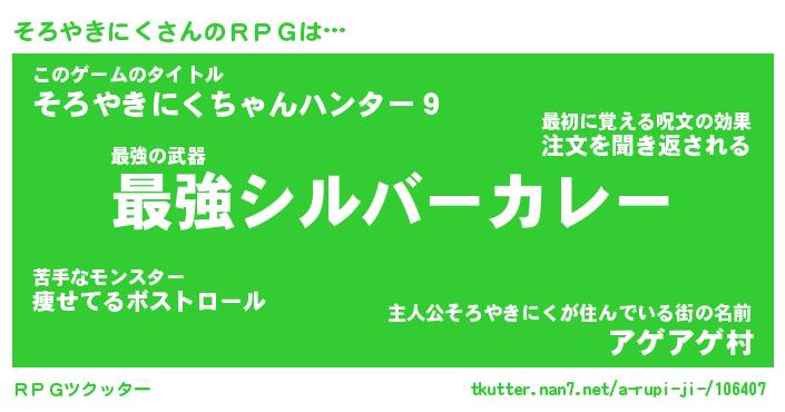 | 欧米人風あだ名 | 『マイケルそろやきにく』 |