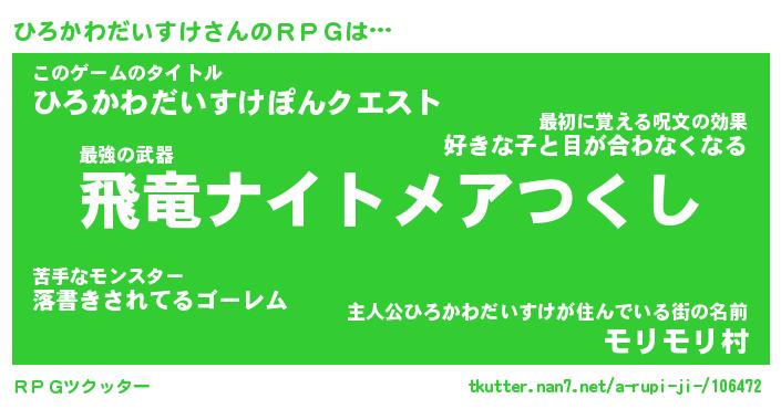 | 胡散臭い通販商品みたいなあだ名 | 『億万長者になれる霊験あらたかなお札…その名も「ひろかわだいすけ」』 |
