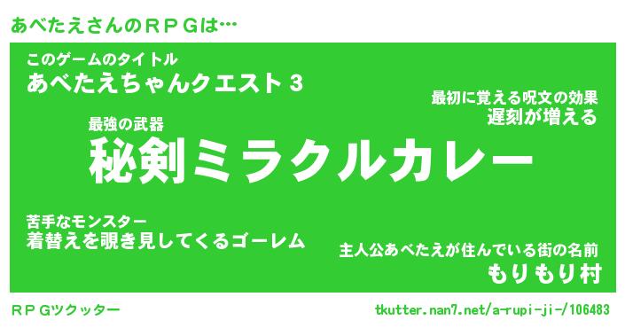 | 伝説のあだ名 | 『伝説の竜騎士あべたえ』 |