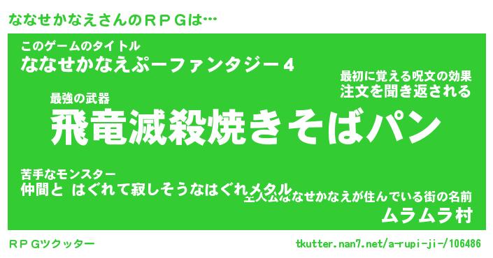 | 伝説のあだ名 | 『封印されしスナイパーななせかなえ』 |