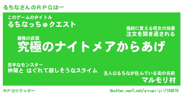 | ファンタジー風あだ名 | 『ルチフェル』『エターナルルチナー』 |