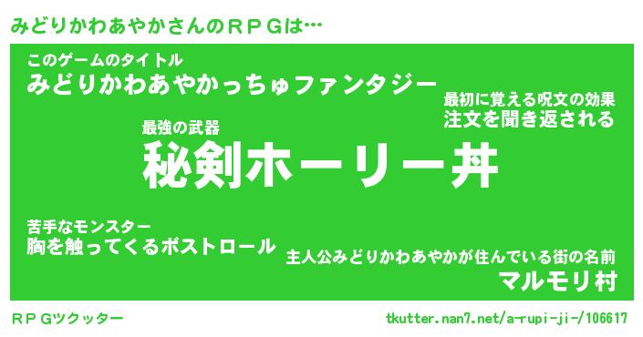 | 伝説のあだ名 | 『不死鳥の傭兵みどりかわあやか』 |