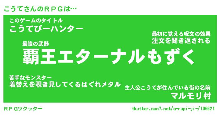 | 男性向けラノベタイトル風あだ名 | 『コウテアートオンライン』 |