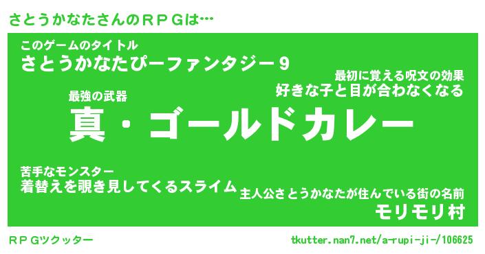 | 伝説のあだ名 | 『封印されしスナイパーさとうかなた』 |