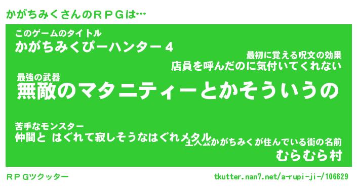 | 男性向けラノベタイトル風あだ名 | 『カガチミクアートオンライン』 |