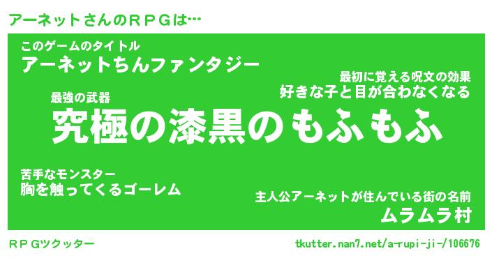 | ヒーロー風カッコイイあだ名 | 『スーパーアーネット』『幻影騎士アー』 |