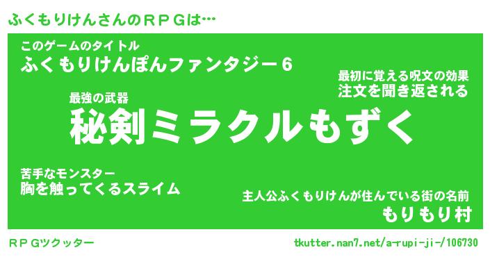 | ヒーロー風カッコイイあだ名 | 『スーパーフクモリケン』『魔戒騎士フク』 |