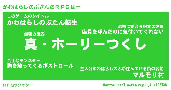 | 男性向けラノベタイトル風あだ名 | 『カワハラシノブアートオンライン』 |