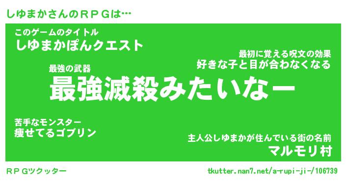 | ファンタジー風あだ名 | 『シユフェル』『エターナルシユマカー』 |