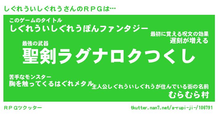 | 胡散臭い通販商品みたいなあだ名 | 『必ず成功するブレスレット…その名も「しぐれういしぐれう」』 |