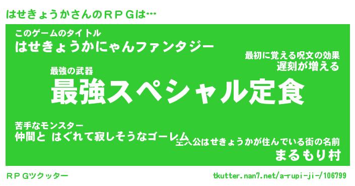 | 料理風あだ名 | 『節約★はせきょうかと油揚げの玉子丼』 |