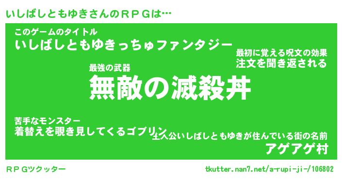 | 料理風あだ名 | 『節約★いしばしともゆきと油揚げの玉子丼』 |