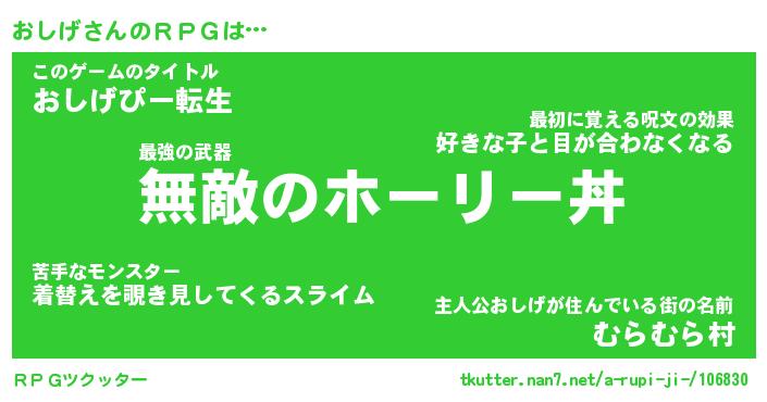| 男性向けラノベタイトル風あだ名 | 『オシゲアートオンライン』 |