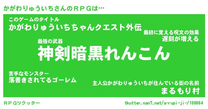 | 男性向けラノベタイトル風あだ名 | 『かがわりゅういちの憂鬱』 |