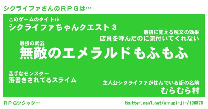 | 男性向けラノベタイトル風あだ名 | 『シクライファアートオンライン』 |