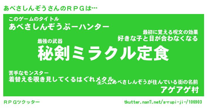 | 肩書あだ名 | 『あべさしんぞう社長』 |