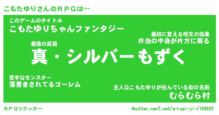 | 伝説のあだ名 | 『封印されし傭兵こもたゆり』 |