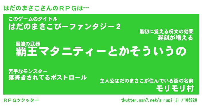 | 2回繰り返すあだ名 | 『はだはだ』『ははだだ』『ぐだぐだ』 |