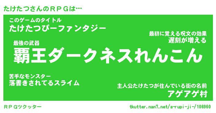 | ファンタジー風あだ名 | 『タケフェル』『エターナルタケタツー』 |