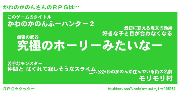 | ヒーロー風カッコイイあだ名 | 『スーパーカワノカノン』『幻影騎士カワ』 |