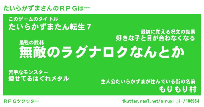 | 男性向けラノベタイトル風あだ名 | 『タイラカズマアートオンライン』 |