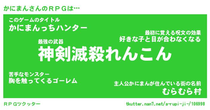 | 男性向けラノベタイトル風あだ名 | 『かにまんの憂鬱』 |
