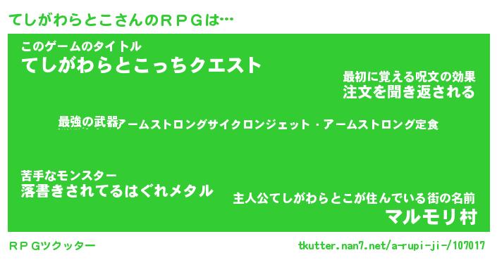 | 胡散臭い通販商品みたいなあだ名 | 『億万長者になれるブレスレット…その名も「てしがわらとこ」』 |
