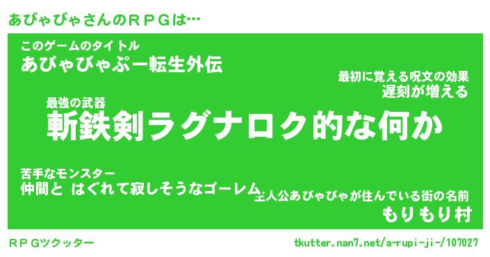 | 男性向けラノベタイトル風あだ名 | 『あびゃびゃの憂鬱』 |